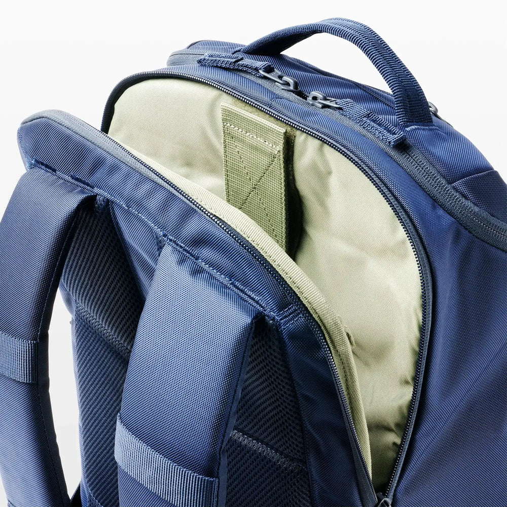 - Padded back panel with flex-cuff channel; quick-release shoulder straps with removable sternum strap