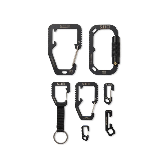 Lock in, link up, move fast. 5.11’s Hardpoint Carabiner Kit brings together six field-ready attachments that hook, clip and secure webbing and belt loops to packs and pouches. Each piece is forged from stainless steel for wear and corrosion resistance, with self-closing gates and gimped edges for confident, one-hand operation. Compact, modular and built to grip, this system hauls tools, keys, gloves and small accessories without slowing you down.