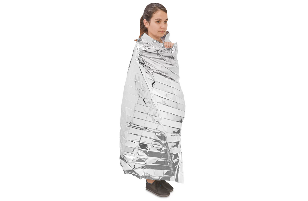 Space Foil Rescue Blanket, designed to retain the body heat for victims in shock.