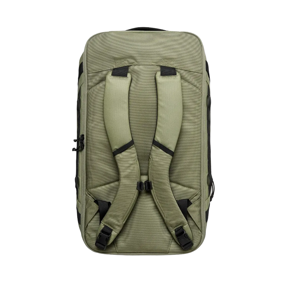 - Stowable shoulder straps for backpack-style carry