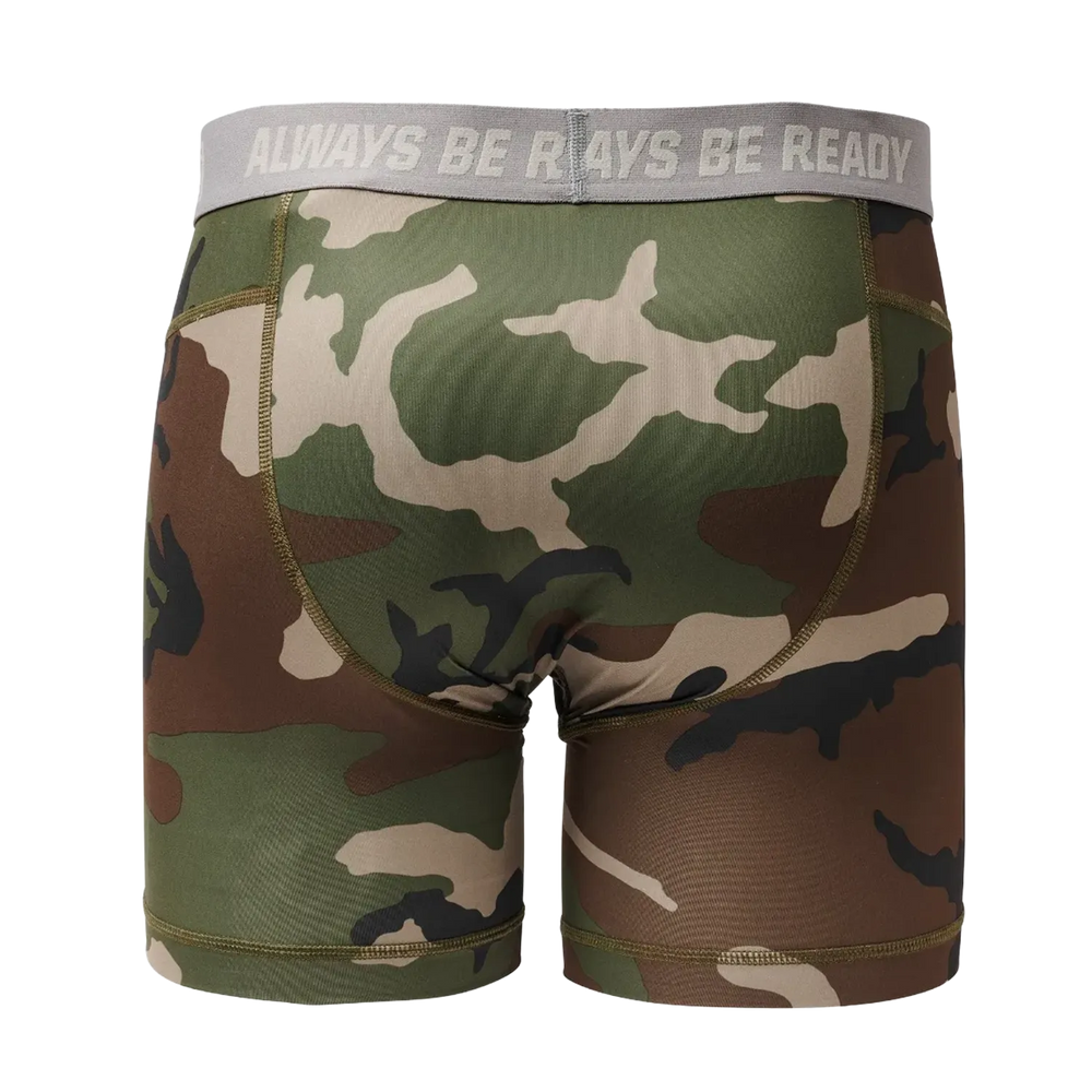 Built for all-day performance, 5.11’s Mission Ops Brief uses a lightweight, moisture-wicking jersey that fights odour and moves with you. Flatlock seams, a gusseted construction and a tagless finish keep it comfortable under load, while the jacquard elastic waistband—woven with Always Be Ready®—delivers a secure, stay-put fit. Finished with an all-over woodland camo print for low-key character.