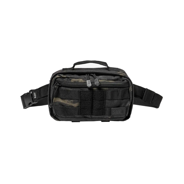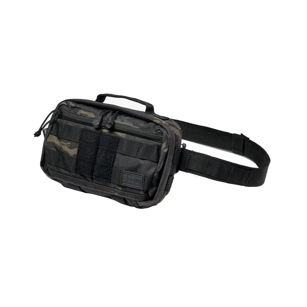 Built for discreet, everyday carry, 5.11’s RUSH® MOAB™ 3 in MultiCam® Black runs as a standalone crossbody or waist pack and also integrates with other RUSH bags via the 5.11® Tier System. A removable 1.5" (approx. 3.81 cm) waist strap with a quick-release buckle and four connection points delivers a secure, comfortable fit in either configuration. External web MOLLE across the front (with loop) and side panels enables modular customisation, while bottom-panel web loops handle additional accessories. Inside the zipped main compartment, a TacTec® loop panel and trigger-guard cord loops provide CCW compatibility, complemented by elastic organisers for tidy load carriage. A top grab handle expands carry options and an external front zipped pocket stows quick-grab essentials.