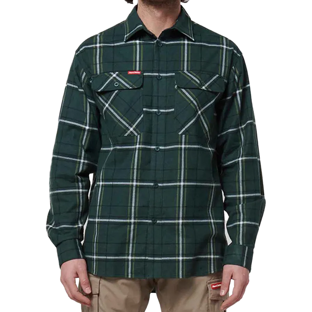 Stay comfortable on the job or off-duty in this best-selling checked flannel shirt for men from Hard Yakka. Made from lightweight, breathable 100% cotton and finished with a soft brushed texture, it’s built for all-day wear. Featuring dual chest pockets—one with a handy pen divider—and pleated shoulders for added mobility, this long-sleeve shirt blends classic styling with practical design.